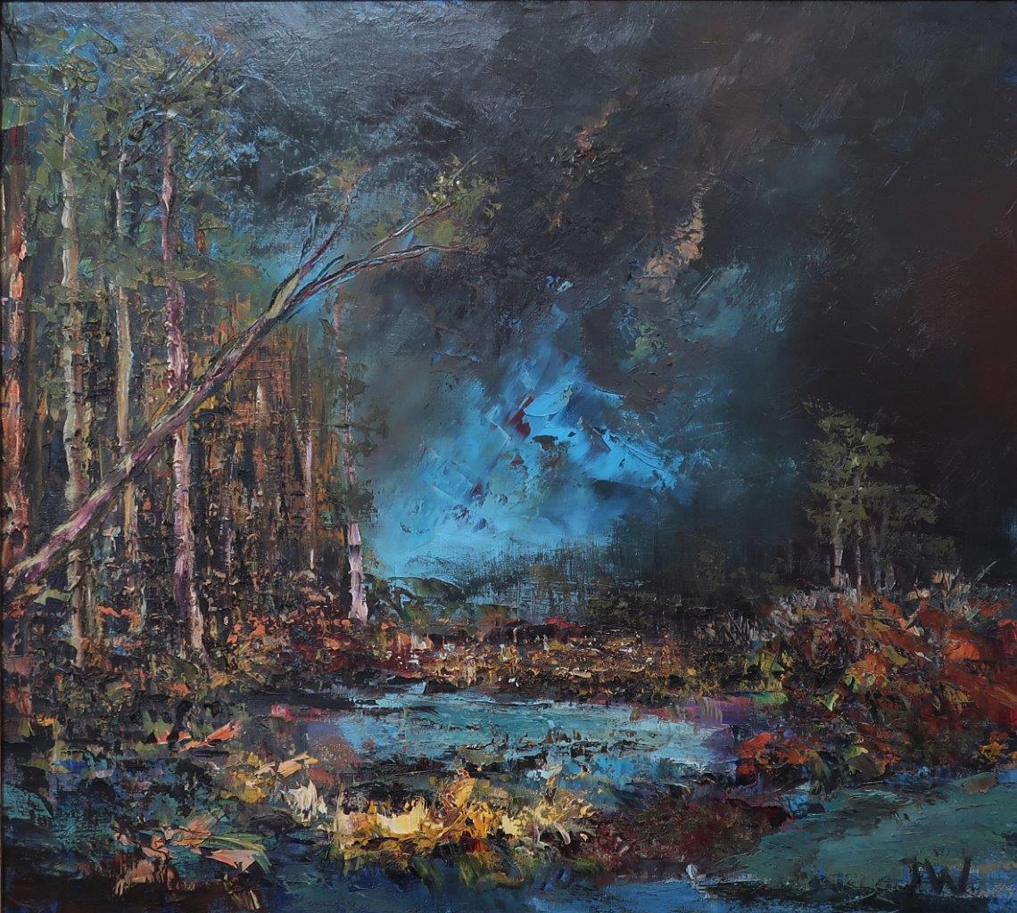 Dit magische bosgezicht van Jan Woning speelt met licht en laat de blik van de aanschouwer verdwijnen in de bosven.