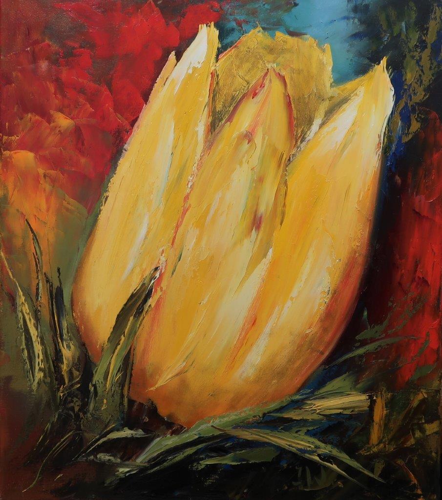 Dit werk van Jan Woning is een exclusieve aanwinst voor elk interieur. Door de manier van schilderen en het volle kleurgebruik met olieverf valt dit werk op en blijf je er naar kijken.