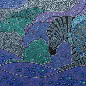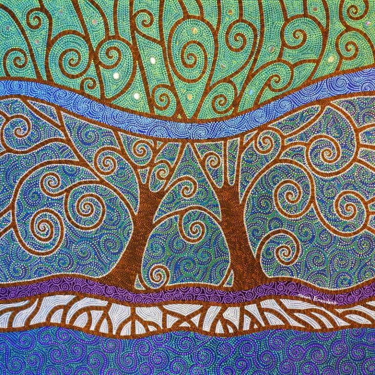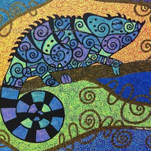 Surrealistisch pointillisme. Vrolijk en toegankelijk werk, met engelengeduld en passie geschilderd door Manon Elmendorp.