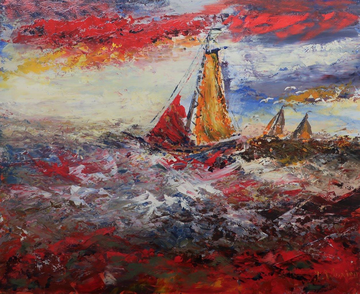 Dit werk van Jan Woning is een exclusieve aanwinst voor elk interieur. Door de manier van schilderen en het volle kleurgebruik van olieverf valt dit werk op en trekt het de kijker als het ware in de compositie.